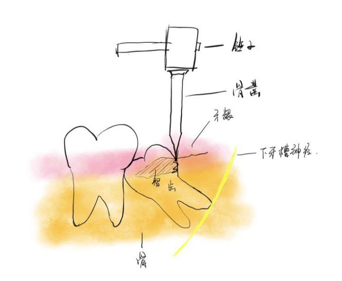 △傳統的鑿骨劈冠法拔智牙,手法簡單粗暴。